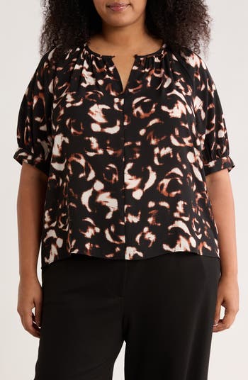 Voluminous puff sleeves add a dose of drama to this perfectly patterned top finished with a gathered neckline and a front keyhole.