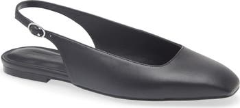 An adjustable mary jane strap lends easy wear and retro-inspired style to a slingback flat fashioned with a squared-off toe.