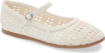 An open-weave design defines this Mary Jane flat made for stylish little strides.