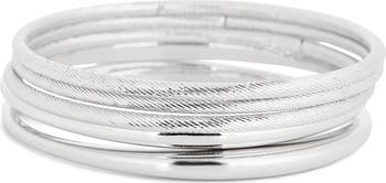 Mixed textures further the multi-band effect of a one-piece bangle that looks like a set.