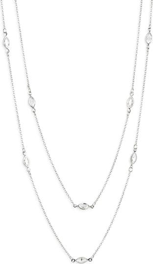 Instantly create a sophisticated layered effect with this multistrand necklace accented with stationed cubic zirconia stones.