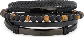 Get a cool stacked look with this multirow bracelet showcasing textural faux-leather strands and semiprecious stone beads secured by a magnetic closure.