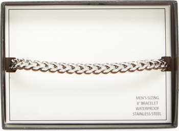 An artfully knotted cord intertwines with the the gleaming curb-chain links of this rugged bracelet crafted from polished stainless steel.
