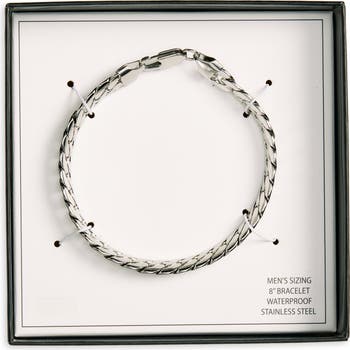 Crafted from polished stainless steel, this chain bracelet can be worn as a singular or layered piece.
