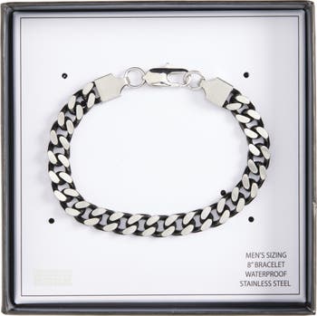 Show off this contemporary curb-chain bracelet constructed from recycled stainless steel with a gleaming two-tone finish.