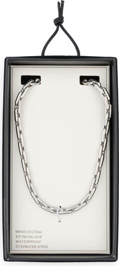 Thick chain links draw the eye to a stainless steel neckline done in a high-shine finish to brighten any ensemble.