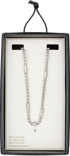 Add some sparkle to your style with this stainless steel box-link and station-chain necklace with a waterproof finish for effortless styling.