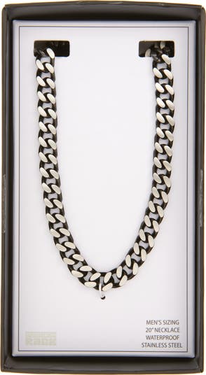 Edge-plated curb links come together in a waterproof stainless steel necklace that adds a sharp statement to any outfit.