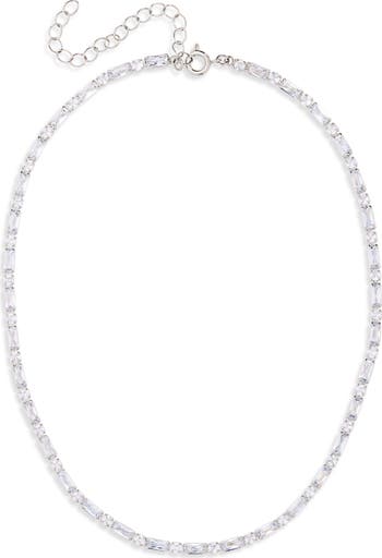 Baguette- and round-cut CZ stones give a luminous finish to a simple yet stunning tennis-style necklace to easily elevate your look.
