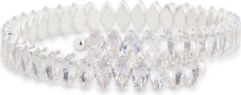 Prong-set marquis-cut crystals sparkle and shine along the bypassing band of a flexible cuff bracelet to dress up your style.