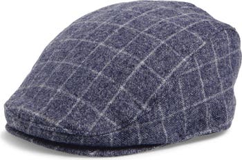 Dapper and refined, this driver's cap is crafted from a textured fabric with a plaid pattern.
