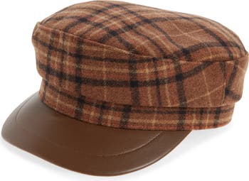 Plaid Faux Leather Brim Cabbie Driving Cap