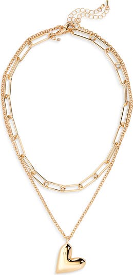 Instantly create a sophisticated layered effect with this gold-plated multistrand necklace accented with a single puffy heart pendant.