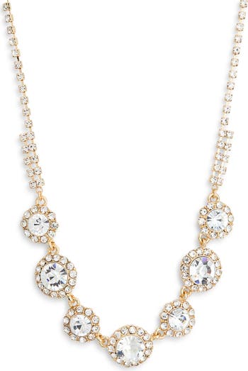 Perfect for a night out, this glamorous choker necklace showcases round crystals framed by halos for dazzling sparkle.
