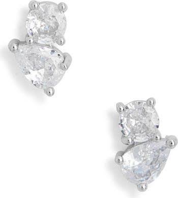 Show off dazzling sparkle with these duo stud earrings illuminated by round- and pear-cut cubic zirconia.