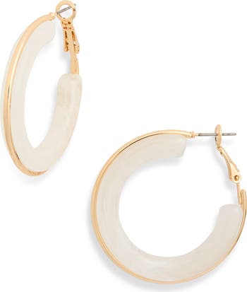 Kick your everyday look up a notch with these gleaming hoop earrings accented with resin.