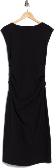 Side ruching softly shapes this sleeveless sheath dress cut from stretchy ponte fabric that’s perfect for your desk‑to‑dinner looks.