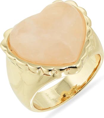 Show off romantic shine with this rose-quartz cabochon ring boasting a pretty scalloped setting and a glossy finish.