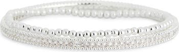 Love to layer with this set of glamorous bracelets traced by polished metallic beads and sparkly cubic zirconia.