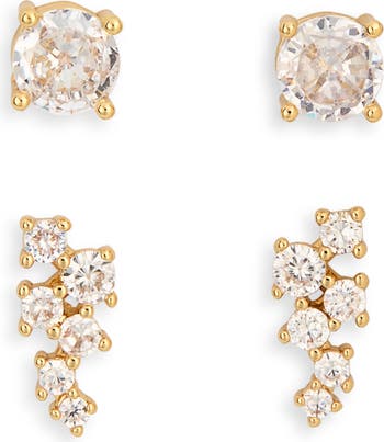 Set of 2 Cubic Zirconia Round & Clustered Stud Earrings