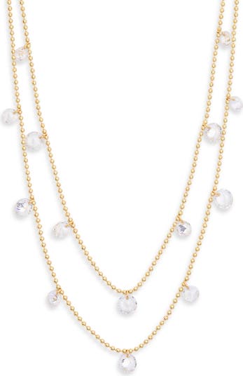 Set of 2 Floating Cubic Zirconia Ball Chain Necklaces