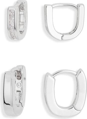 Mix up your look with this set of highly polished huggie-hoop earrings illuminated by sparkly cubic zirconia and plated in sterling silver or 14-karat gold.