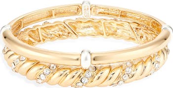 Refresh your jewelry collection with this duo of bracelets featuring a rope-textured bangle and a smooth, two-toned style.