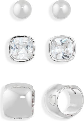 Set of 3 Cubic Zirconia Stud & Huggie Hoop Earrings