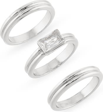 Stack on the shine with this set of three textured-band rings accented by a sparkly baguette-cut cubic ziroconia.