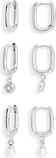 Elevate your ear stack with this assorted set of oval hoop earrings that feature plain, cubic-zirconia or faux-pearl drops.