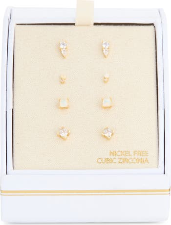 Set of 4 Cubic Zirconia Square Stud Earrings
