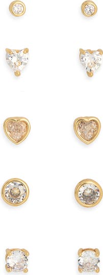 Mix up your look with this set of assorted stud earrings illuminated by sparkly cubic zirconia and plated in warm 14-karat gold.