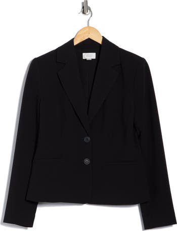 A slim fit brings a modernized look to a sophisticated blazer tailored with crisp lines and minimal details for easy pairing.