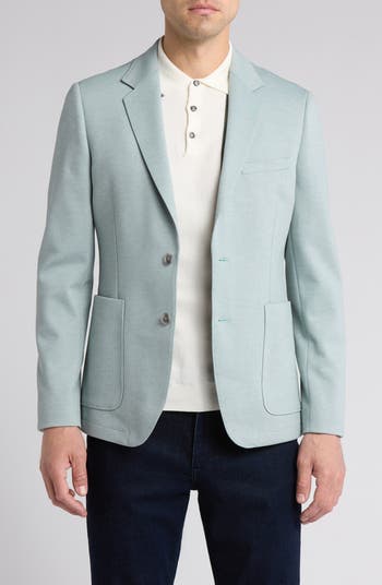 Step up your style with this subtly textured knit sport coat featuring notched lapels, welt and patch pockets, and a two-button closure.