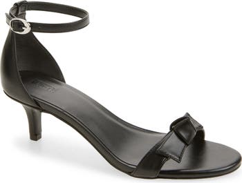 A knotted bow brings a polished touch to this ankle-strap sandal lifted by a modest kitten heel.
