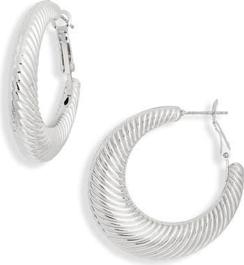 A textured finish catches the light on these everyday hoop earrings boasting a high-shine finish.