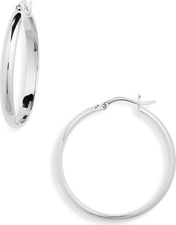 Complete any outfit with these lightweight tube hoop earrings boasting a high-shine finish.