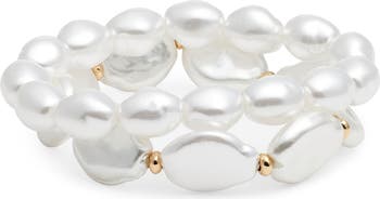 Organically shaped faux pearls and polished beads enrich this stackable set of stretch bracelets that bring nature-inspired shine to your wardrobe.