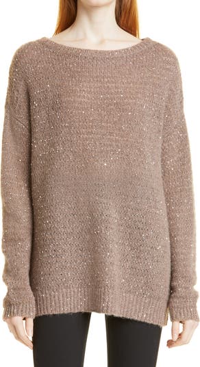 Starry sequins animate this casually elegant sweater, done in a roomy fit and knit from a yummy yarn blend enriched with wool, cashmere and alpaca.