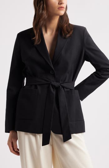 This structured yet relaxed blazer in fluid twill is paired with a matching tie belt that refreshes the look and highlights the natural waist.