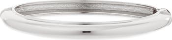 A rounded silhouette enhances the allure of this gleaming bangle done in a hinged design for easy stacking.