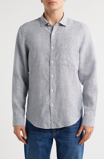 Soft, lightweight linen makes a sunny-day favorite of a shirt that's fashioned with neat yarn-dyed stripes and designed to look great whether you wear it smooth, rumpled, tucked or untucked.