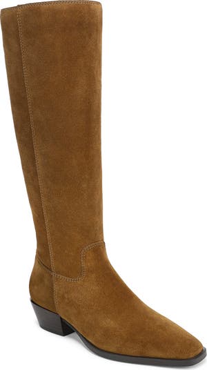 Take your casual style up a notch with this knee-high boot fashioned from smooth leather.