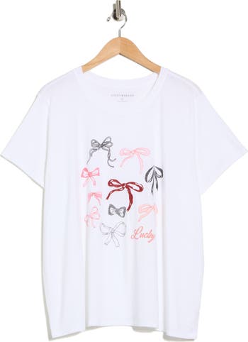Add a playful touch to your casual collection with this cotton-blend T-shirt featuring a colorful graphic of playful bows.