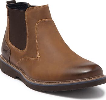 Burnished and contrasting details add a rugged touch to these versatile chelsea boots.
