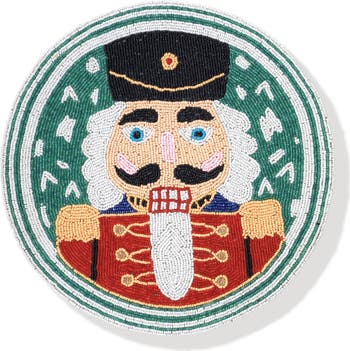 Elevate your tablescape this holiday season with this festive placemat woven with a Nutcracker design with glossy seed beads.