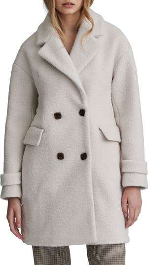 A bouclé coat contrasted by a puffy quilted back brings mixed-media style to your chilly-day look while keeping you comfy and warm.