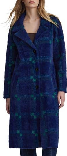Love to bundle up in cold weather with this longline coatigan crafted in plaid faux fur.
