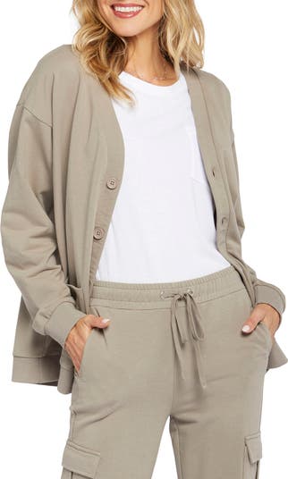 Get the comfort of a sweatshirt and the functionality of a cardigan with this button-up style featuring a relaxed fit, patch pockets and soft French terry.