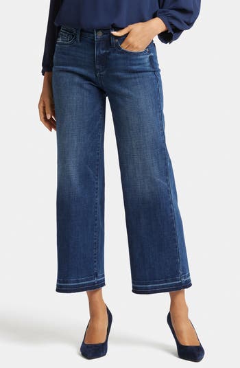 Kicky wide legs give a light-hearted look to these stretch-denim jeans made with casual released hems for laid-back style. The brand's exclusive Lift Tuck® Technology smoothes and supports in front and lifts in back.